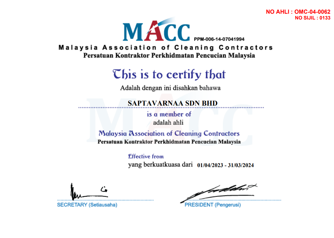 Is a professional cleaning services company specializing in food and beverage outlets, shopping malls, high rise buildings and residential complexes. Established in 2008 based in Kuala Lumpur, we offer a full-fledged cleaning service in both the private and public sector.