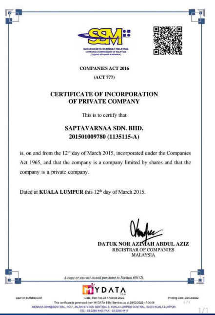 | 10 | FARM TO FORK SDN. BHD | 1152259-X |